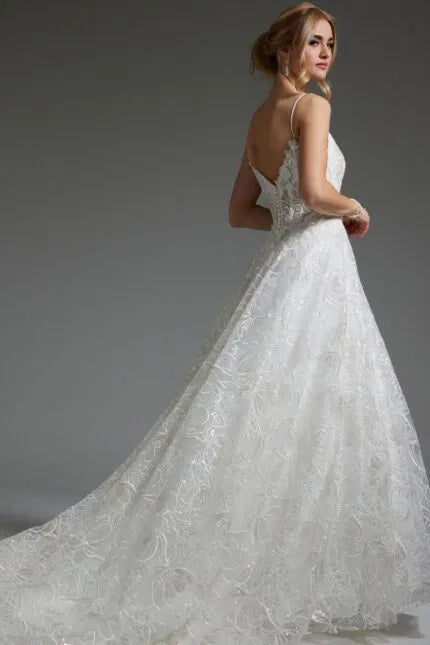 Ivory Embellished Spaghetti Straps Bridal Gown JB422225